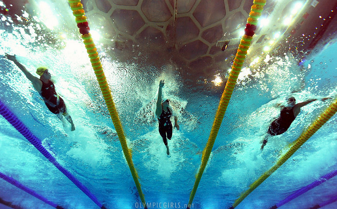Un’immagine suggestiva di Federica Pellegrini in gara alle Olimpiadi di Londra 2012 (photo by olympicgirls.net)