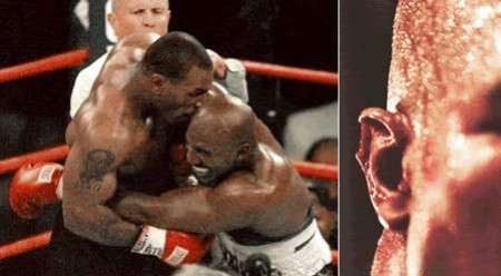 20 anni fa esatti, il 28 giugno 1997, l’immagine che vedete sopra sconvolse miliardi di sportivi, e non solo. Mike Tyson, il pugile più famoso del mondo, già più volte detentore della cintura dei pesi massimi, morse l’orecchio dell’avversario Evander Holyfield, staccandogli un pezzo di cartilagine, nel match valido per la corona mondiale WBA, rivincita dell’incontro con cui Holyfield aveva detronizzato Tyson sei mesi prima con una KO tecnico all’undicesimo round.