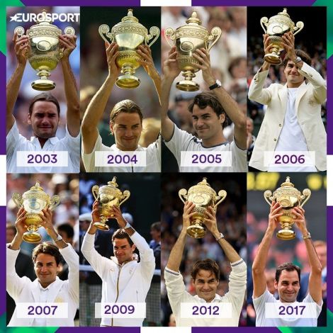 Vi lasciamo, da Eurosport, con un collage fotografico di King Roger con i suoi 8 trofei di Wimbledon.